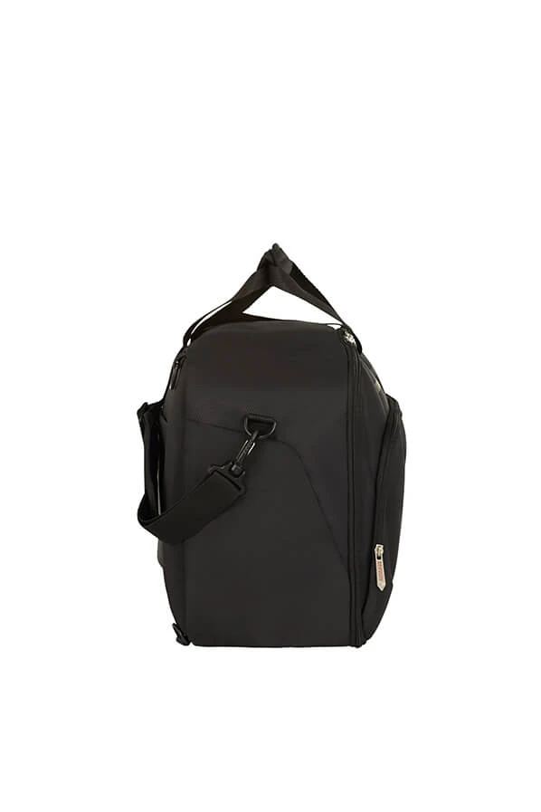 Bolsa de Viaje convertible en mochila gracias a unas tiras ocultas en la parte trasera de la bolsa. Tamaño perfecto para viajar en Vueling, ya que cabe debajo del asiento del avion. Sus medidas son 40 x 30 x 20. Gran capacidad, su apertura tipo maleta permite organizar muy bien la ropa. Color Negro.