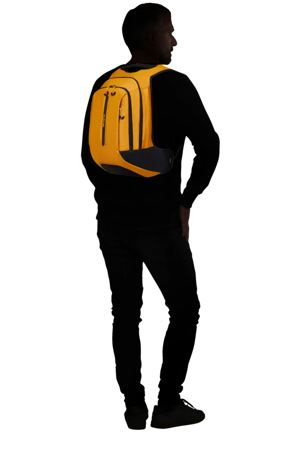 Mochila para ordenador portatil de 15,6″, modelo Ecodiver de Samsonite. Tamaño mediano, con capacidad para 19 ltrs.. Dispone de un compartimento central grande y un bolsillo delantero con organizador de oficina. Confeccionada en material reciclado PET, con revestimiento resistente la agua. Las cintas se ajustan de forma comoda y ergonomica a tu espalda y dispone de ajuste delantero al pecho. Color Amarillo.